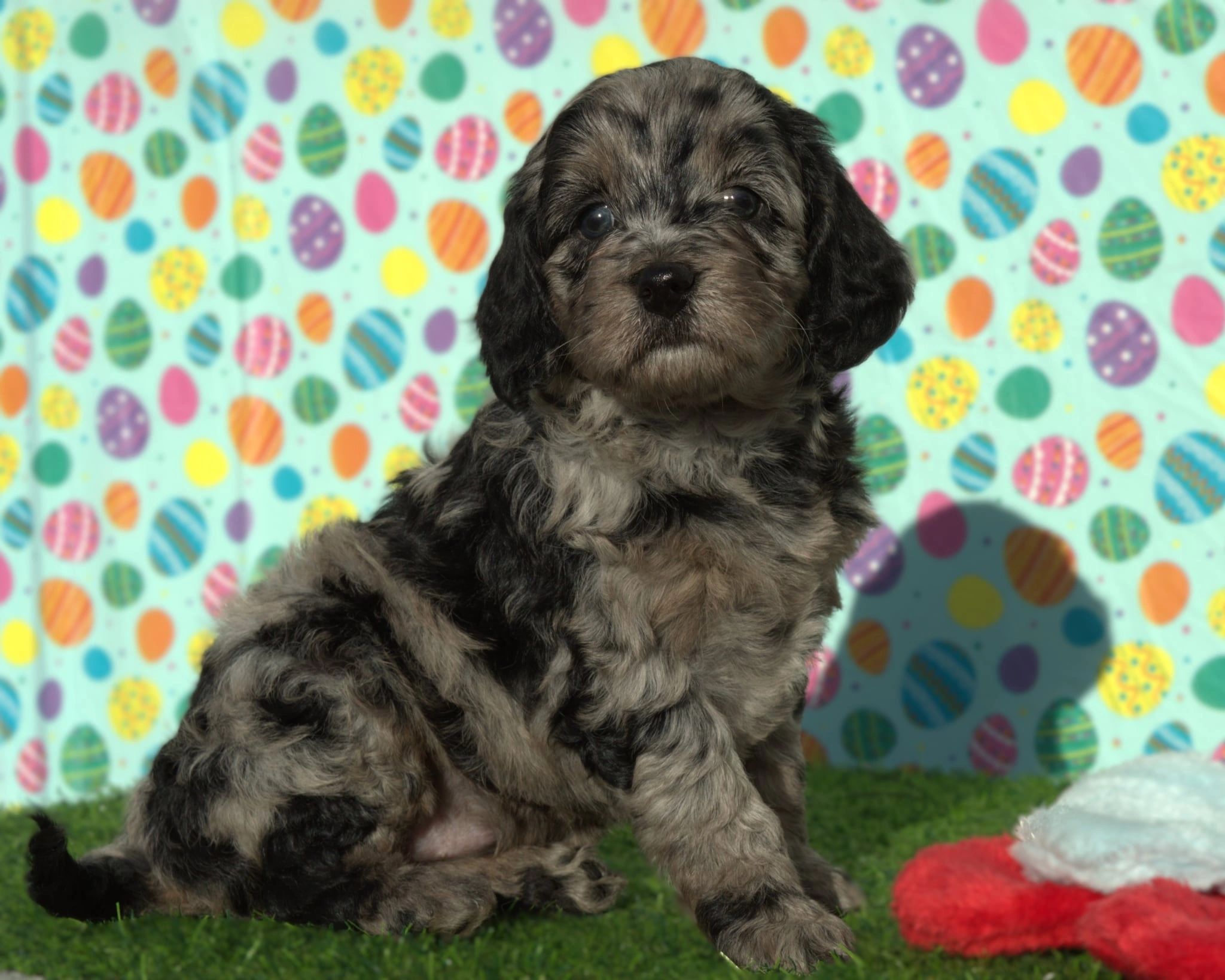 Available Aussiedoodle puppy Latte enjoying an Easter run with the company of his grandma and friends.